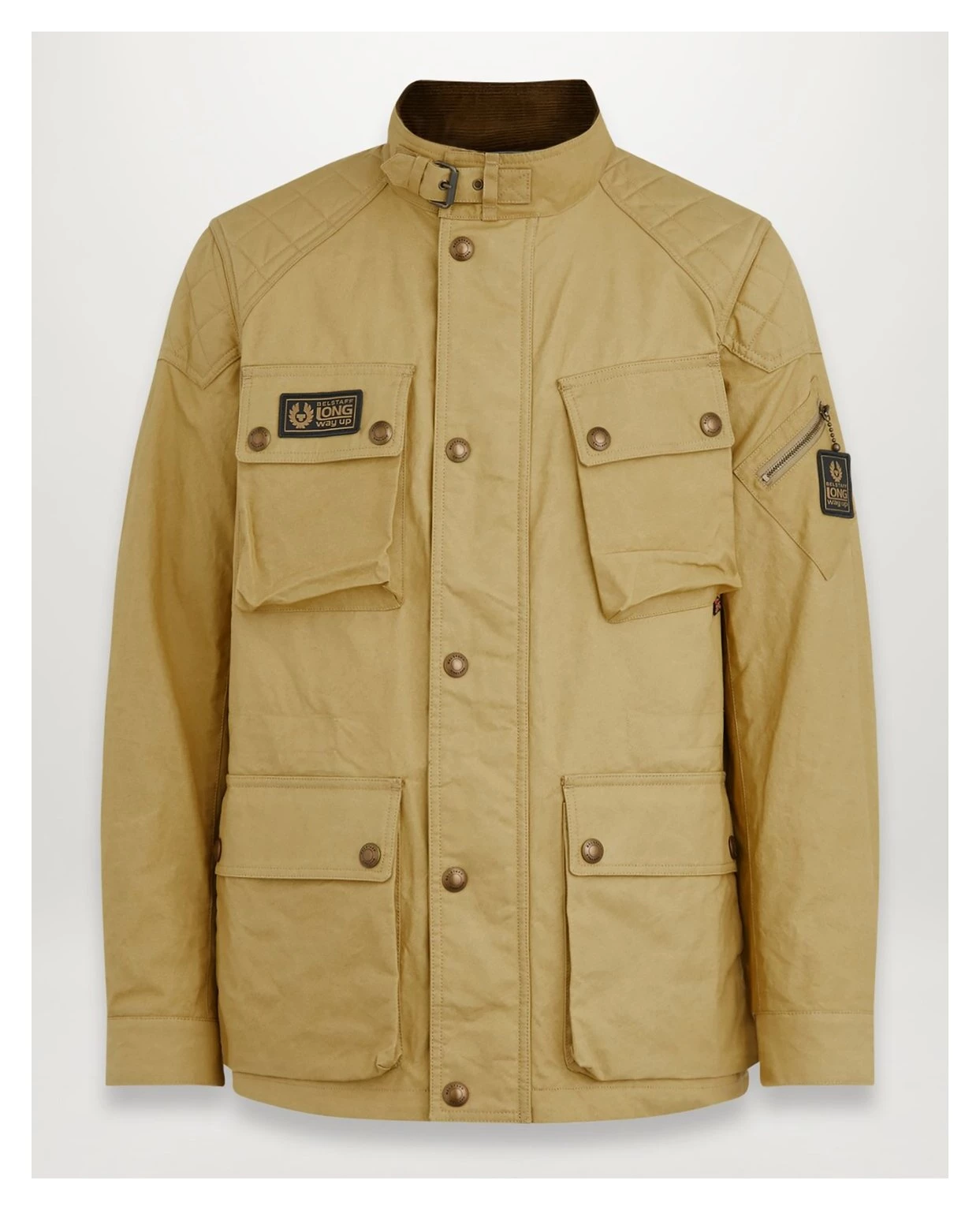 - Belstaff Long Way Up horizontal woven patch at right chest pocket flap