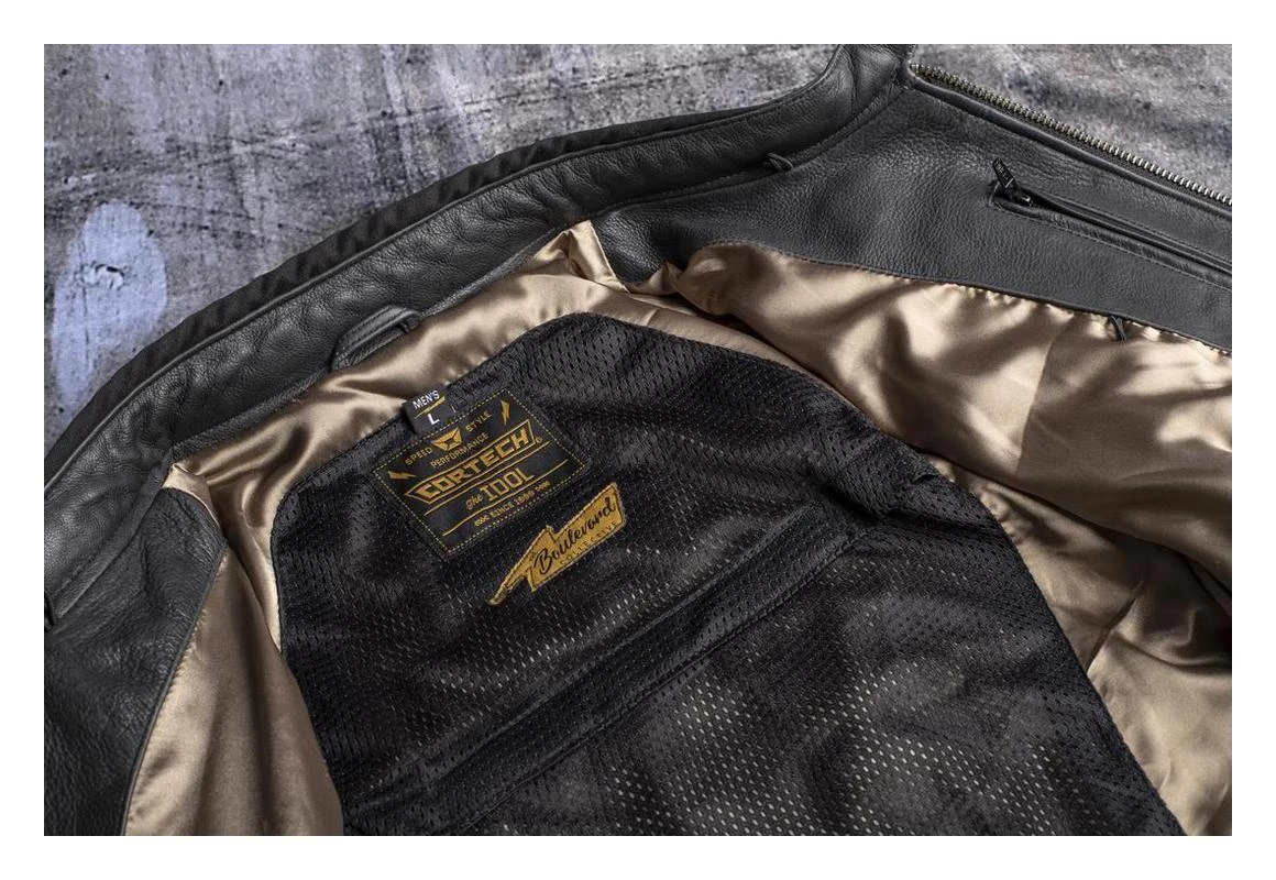 It’s a nice day for a white wedding. Or for premium drum dyed pull-up leather. The Cortech Idol jacket arrives oiled-conditioned for a vintage look and feel right from the start. A large panel of accordion stretch runs the length of the underarms for improved fit and style. Impact areas feature reinforced leather. Additional premium details include SAS-TEC® CE Level 2 shoulder and elbow armor and an ultra-comfortable satin liner.Â