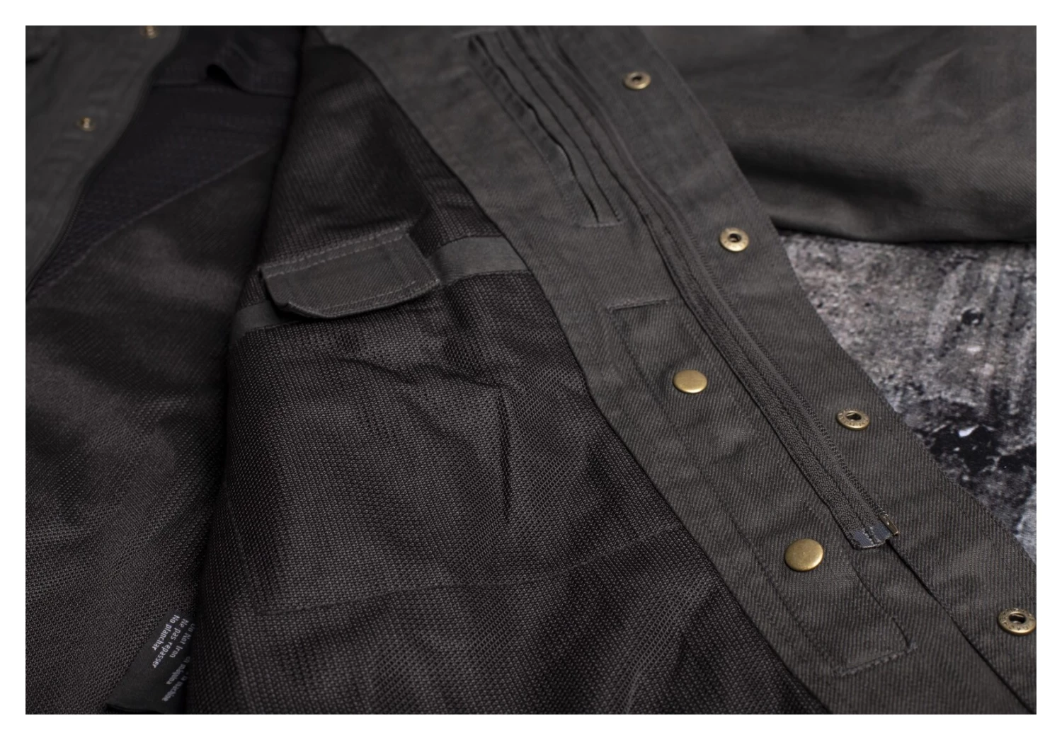 No black magic here. The Voodoo uses time-tested waxed denim, a full liner of abrasion resistant Syncromesh material, and Dupont™ Kevlar® at the shoulders and elbows to become your next favorite riding shirt. CE Level 1 impact armor is included at the shoulders and elbows and a pocket is provided for an optional back protector (sold separately). Zippers and buttons are given a burnished brass finish to complete the Voodoo Riding Shirt’s look.