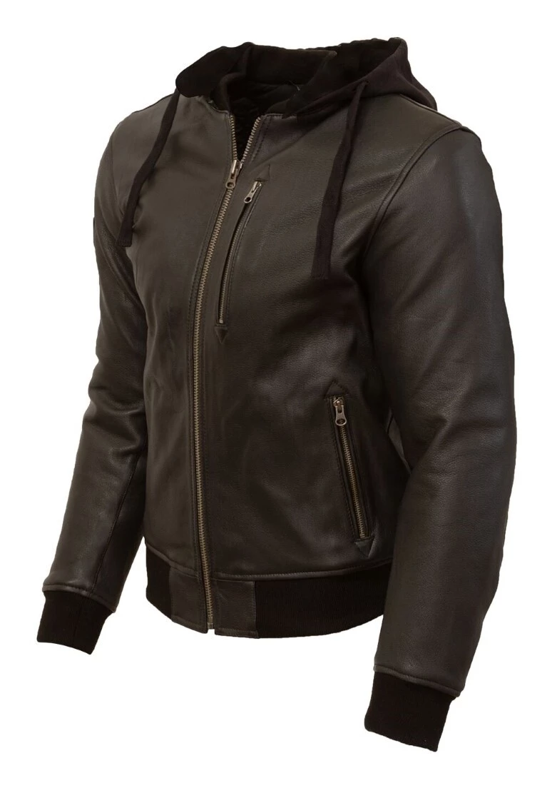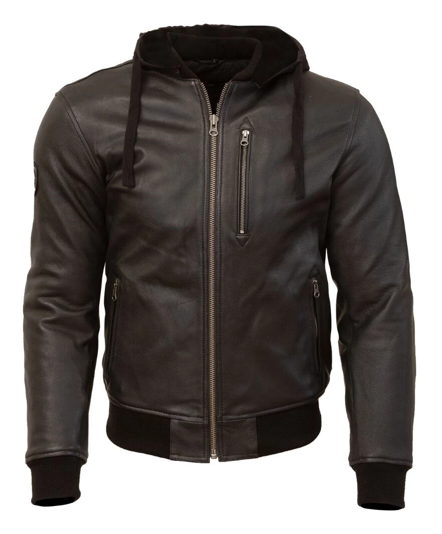 - Full leather construction with heavy 220 gram premium cotton hood (detachable)