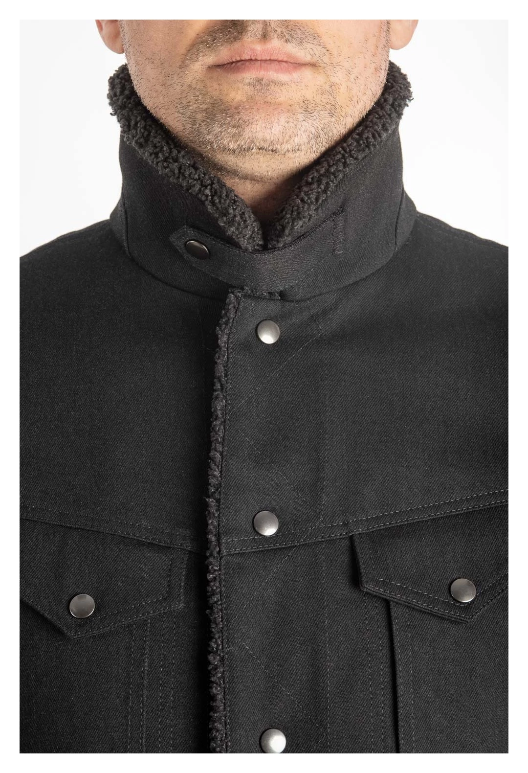- Sherpa material used for collar, sleeves inner cuffs and front facing