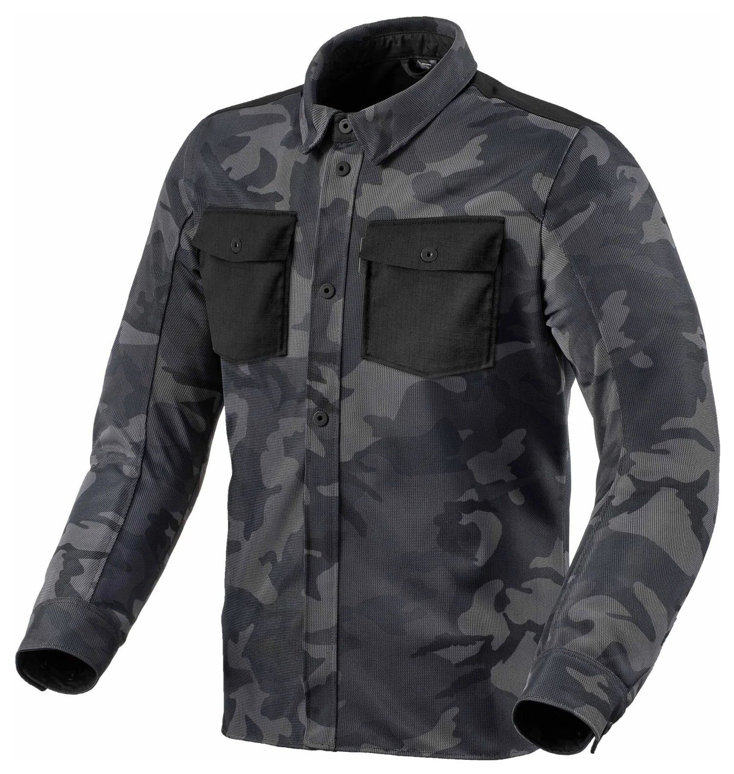 The REV’IT! Tracer Air 2 Overshirt appears like a high quality button up shirt, but it is actually jammed packed with technical features. Its outer shell uses Cordura ripstop and PWRshell mesh for abrasion resistance and optimal airflow. CE level 1 Seesmart armor at the elbows and shoulders safeguard against impacts. Complete the impact armor set by adding a back protector to the rear pocket. Minimalist styling obscures well thought motorcycle specific design. A button up front conceals a full front zipper. Buttons on the collar keep it from flapping in the breeze while at speed. The two bottom buttons are concealed under fabric to keep from scratching your tank. If you want to ride in a casual looking shirt, consider upgrading to the Tracer Air 2 for technical safety features.Â