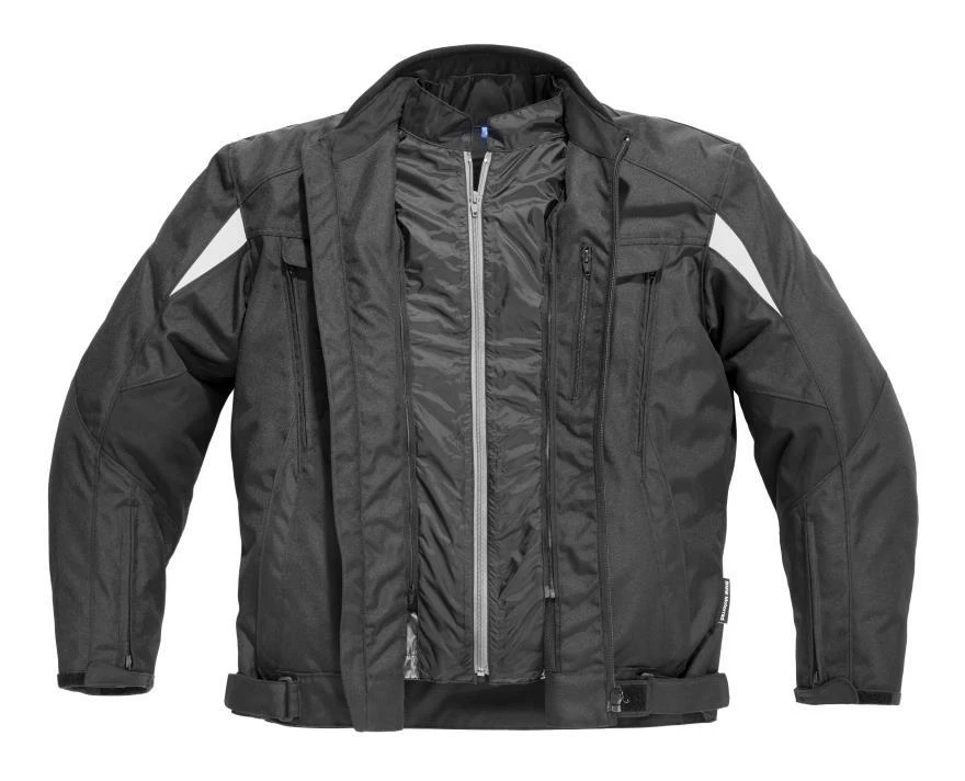 The waterproof Essential Jacket from BMW pairs a tough, water resistant shell with a fully waterproof removable zippered membrane. In warm weather, remove the waterproof liner and enjoy the high volume of airflow moving in through the roll-down front air panels and out through rear exhaust vents. In cooler conditions, the waterproof liner doubles as a windproof barrier to boost the Essential Jacket’s thermal abilities. A full suite of BMW NPL impact protectors is included for the elbows and shoulders. Using the jacket to pants connection zipper, the Essential Jacket can be made into a full touring suit with the addition of the BMW Essential Pants. Bright blue pull tabs add a splash of color to this purposeful touring accessory.