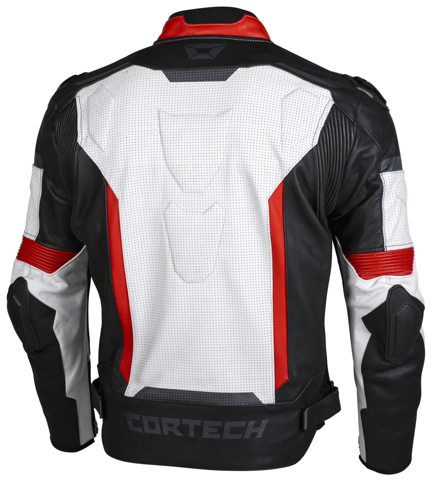 The Apex V1 Jacket packs a full serving of beef (almost literally) at value menu prices. Full cowhide construction is ready for a tumble on road or track. The cut is tailored for the sport rider with pre-curved arms, body-hugging stretch panels and accordion flex zones at the elbows and shoulders – letting the Apex V1 fit a wider spectrum of body types and riding ergonomics. As you work from apex to apex, perforation at the arm, chest and back help keep the air flowing. The hard external shoulder and elbow sliders are another touch that’s rarely seen on jackets in (or anywhere near) this price range.