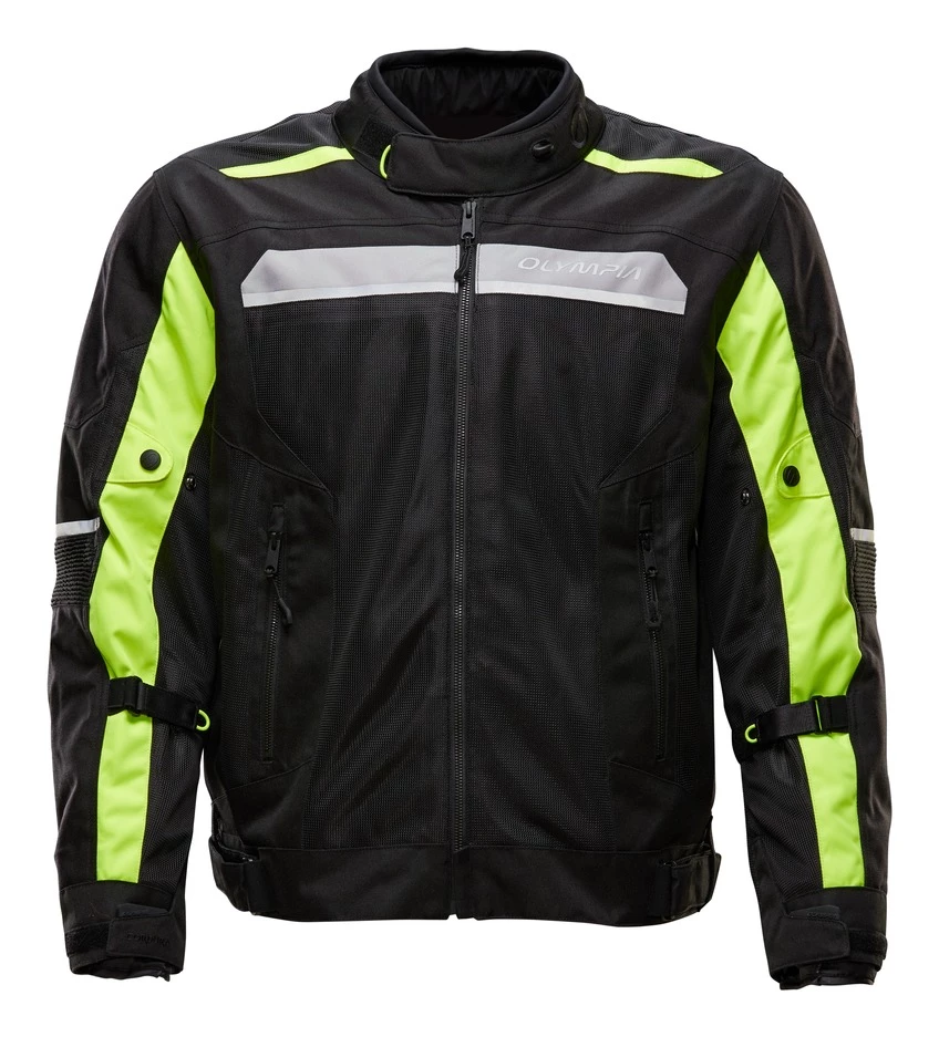 The new Olympia Airglide 6 Jacket is the new and improved tech mesh jacket for your multi-season riding needs. New Cordura fabric with higher density and Powertector Hexa Level 2 armor provide additional abrasion resistance and protection. This jacket also features a new rain jacket 2.5 layer shell with DWR, Aquares WP 5K and MVP 5K, which gives you a super light waterproof and windproof removable liner to customize your comfort in harsher weather conditions. The Airglide 6 comes with improved comfort and fit with stretch panels and an updated sleeve adjustment system. On colder riding days, the thermal layer automatic closure with a magnetic snap is sure to keep the wind off your back.