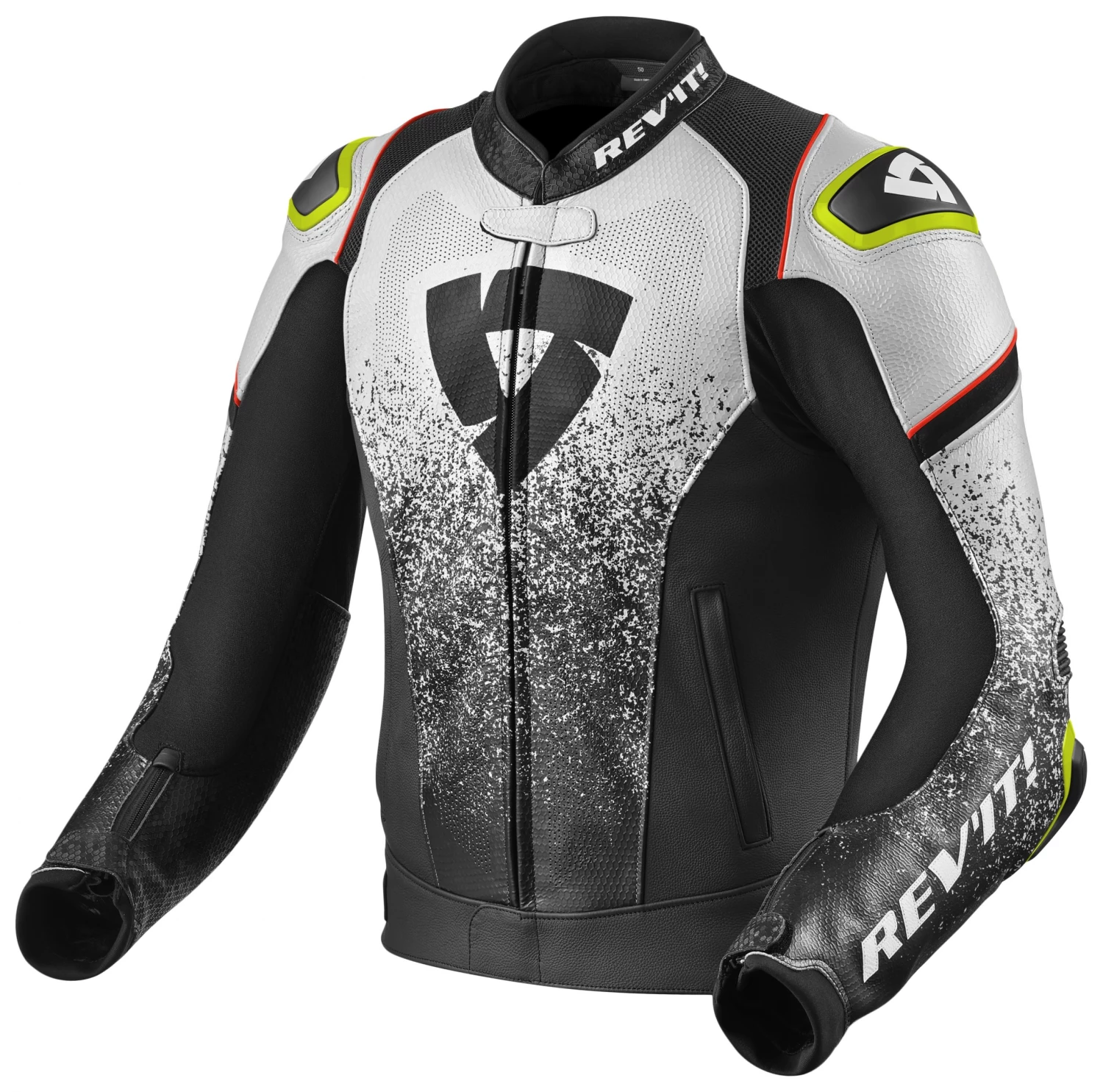 The REV’IT! Quantum Jacket incorporates MotoGP features and an uncommon leather finish to create a jacket with both street and track cred. Monaco cowhide protects against abrasion while robust PWR|shell stretch provides a snug comfortable fit. Add or remove the thermal liner depending on the day’s temperature forecast. Seeflex CE level 2 protection at the elbows and shoulders keep impact energy in check. Back armor is not included, but a pocket is ready for the impact protection upgrade. External dual-comp protectors taken right from the track let everyone know that you are serious about protection.Â