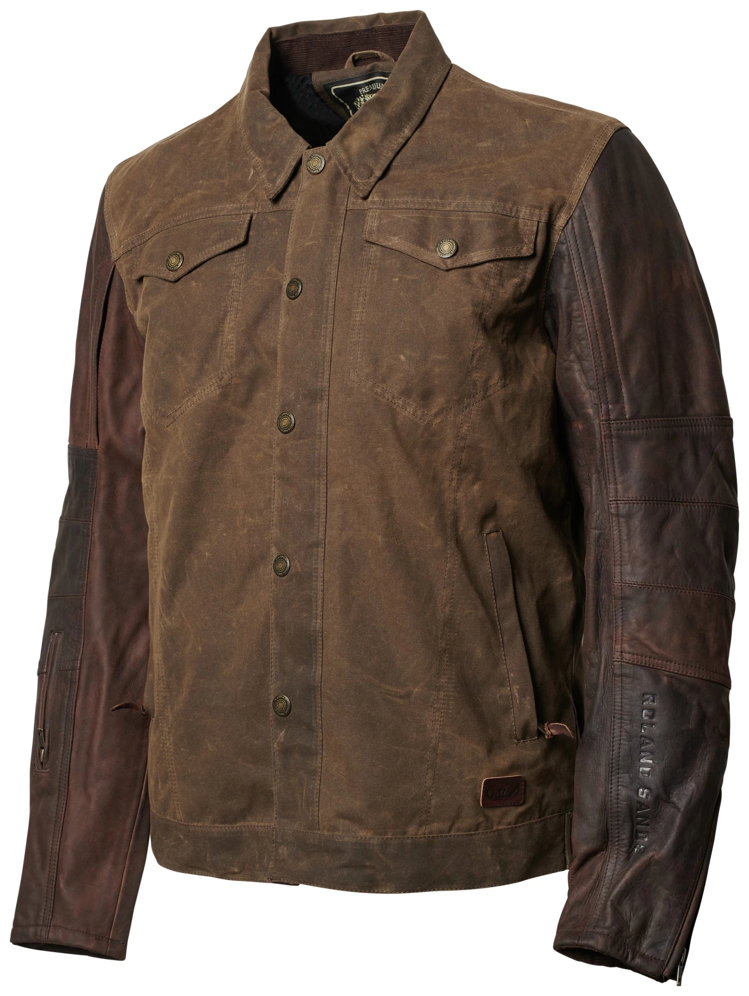 Just like Johnny Cash, who penned classic songs in multiple genres, the RSD Johnny Jacket lives in two worlds. Constructed with a 100% waxed cotton body, the Johnny features hand finished leather sleeves. The front of the jacket is zippered with a flap that snaps into place, ensuring that the Johnny stays closed no matter your speed. Throw in optional Knox Microlock back armor to complement the included CE Level 1 elbow and shoulder protection.