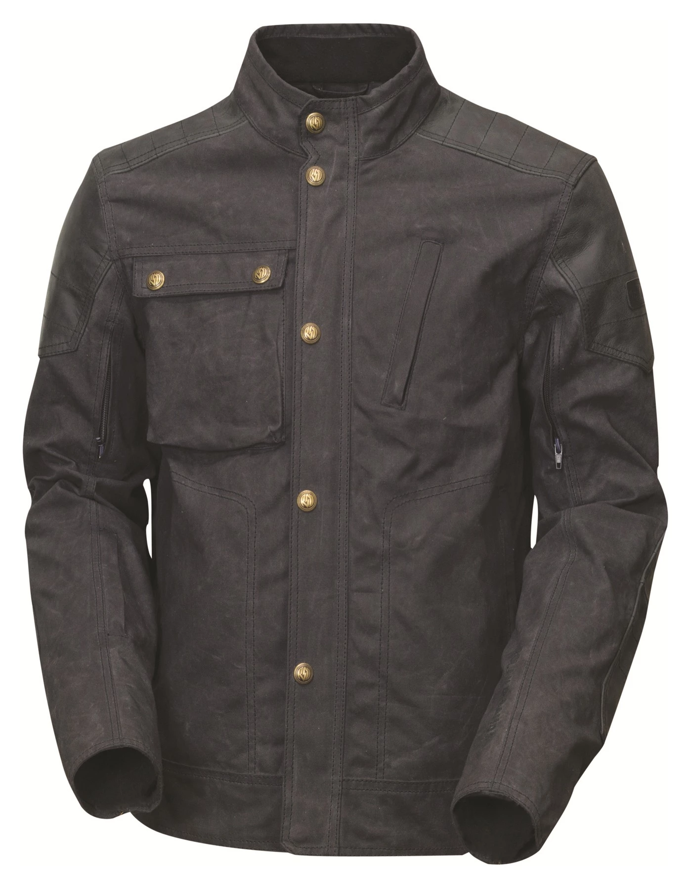 It takes a real man to wear the Roland Sands Truman Jacket. With asymmetrical chest pockets and genuine leather reinforcements in the shoulders and elbows, the RSD Truman Jacket marries bold style and cold-rolled functionality. The water repellent and breathable waxed cotton chassis has ample provisions for ergonomics and stashing your personal effects, including a soft-lined electronics pocket as well as zippered vents on the upper sleeve to enhance the weather versatility of the lightweight textile frame. It was Harry S. Truman himself who said, “Never kick a fresh turd on a hot day.” True wisdom from a true man.