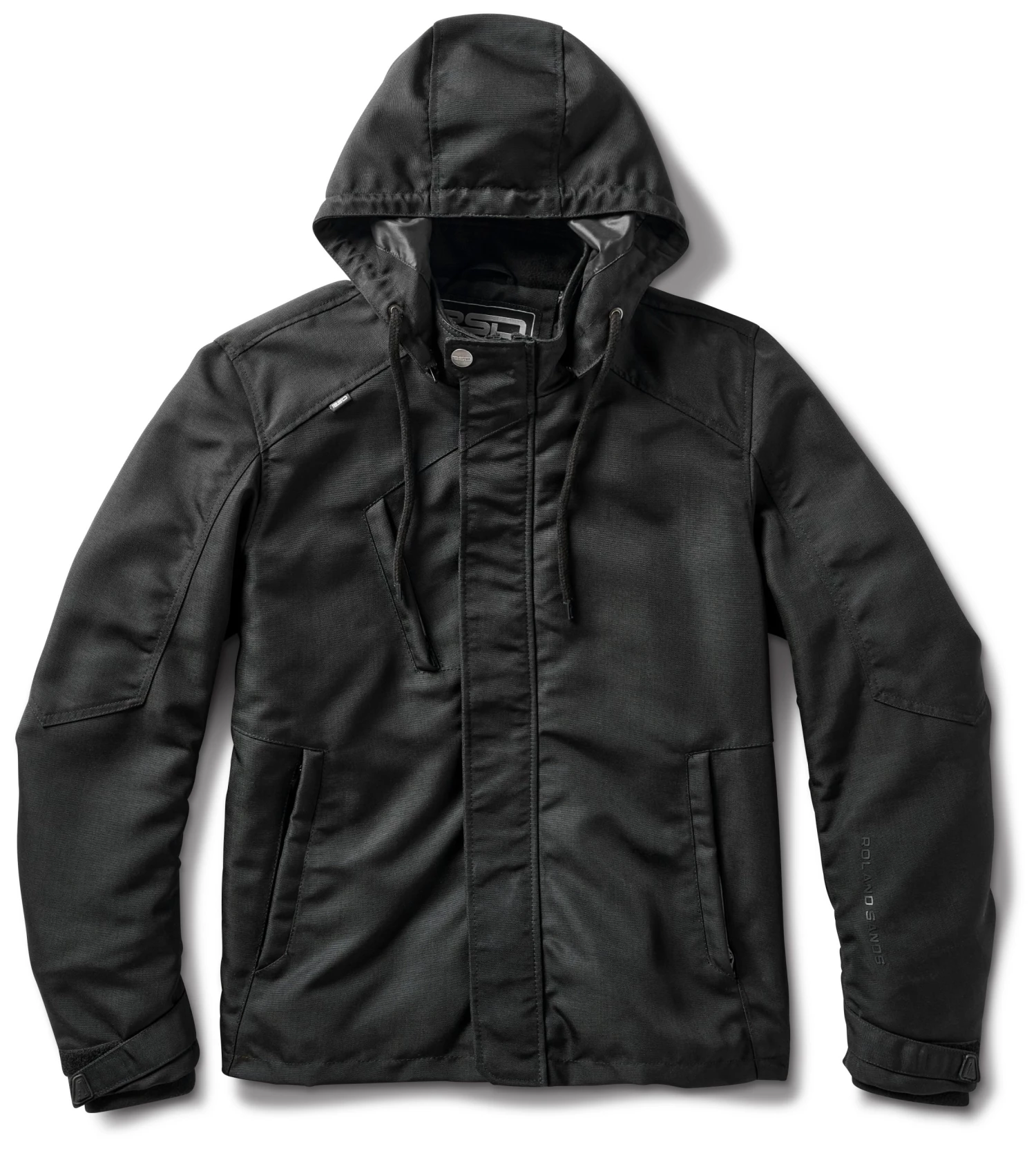 The Roland Sands Ridgeline Jacket by RSD was designed for utility. This Hard-shell jacket provides protection from elements as well as the asphalt. In colder temps you might want to layer up but even with its thin, lightweight construction, the Ridgeline packs a punch in the abrasion resistance department. Outer fabric is a DWR coated 600D material that will hold up if things get sketchy. Waterproof outer chest pocket and hand pockets keep water out and the adjustable cuff with Lycra inner cuffs will keep you hand dry. Inside is an additional waterproof chest pockets and lower mesh pocket for plenty of storage. The Ridgeline Jacket is a great style to keep in your saddlebag when the weather turns sideways.