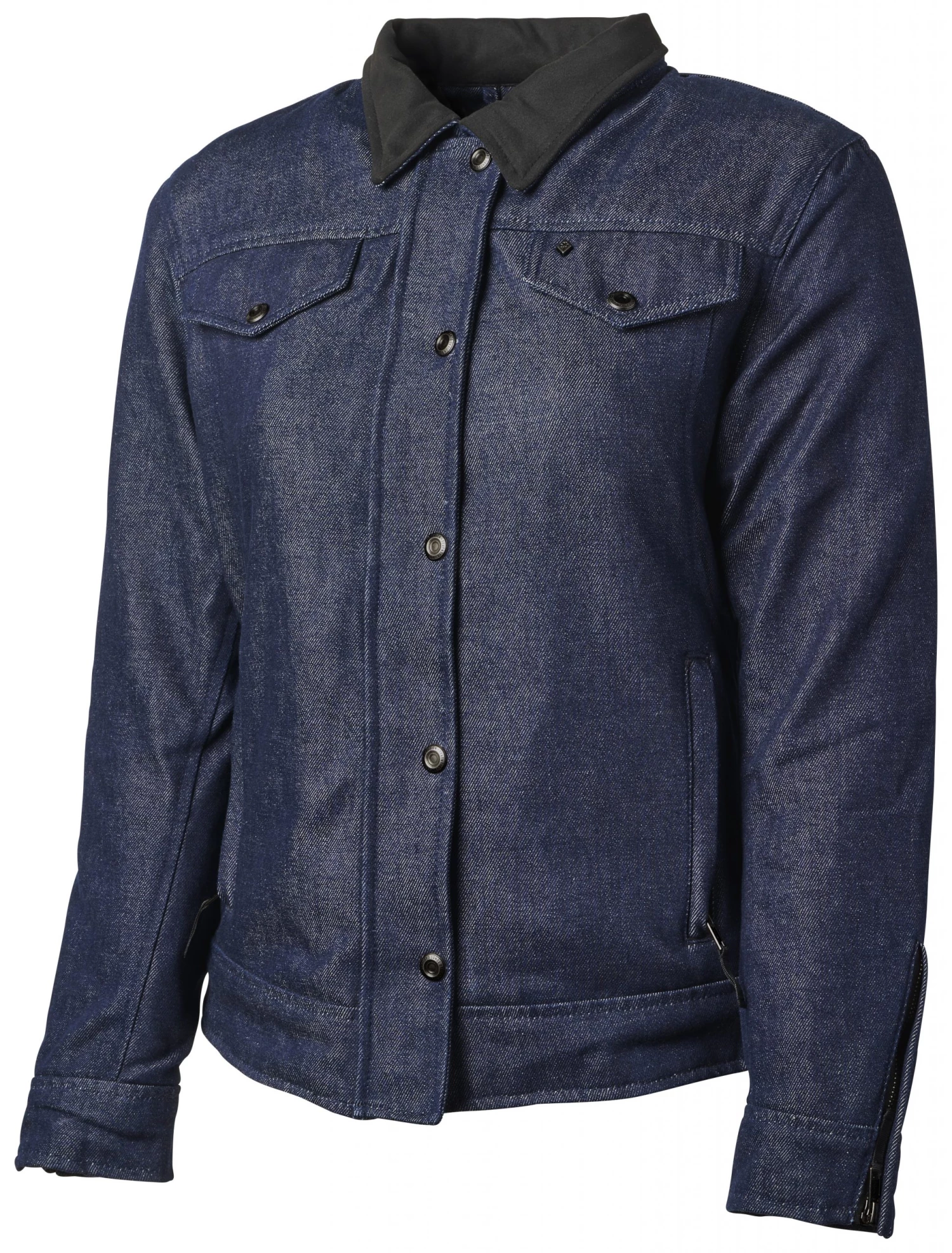 The Redondo Jacket is a great alternative to leather and features a fully aramid mid liner for abrasion protection. The outer shell is a heavy-duty denim to give it that rugged trucker look, while the interior is a plush quilted poly for comfort. Features include a suede snap down collar, internal device pockets and CE level construction.Â