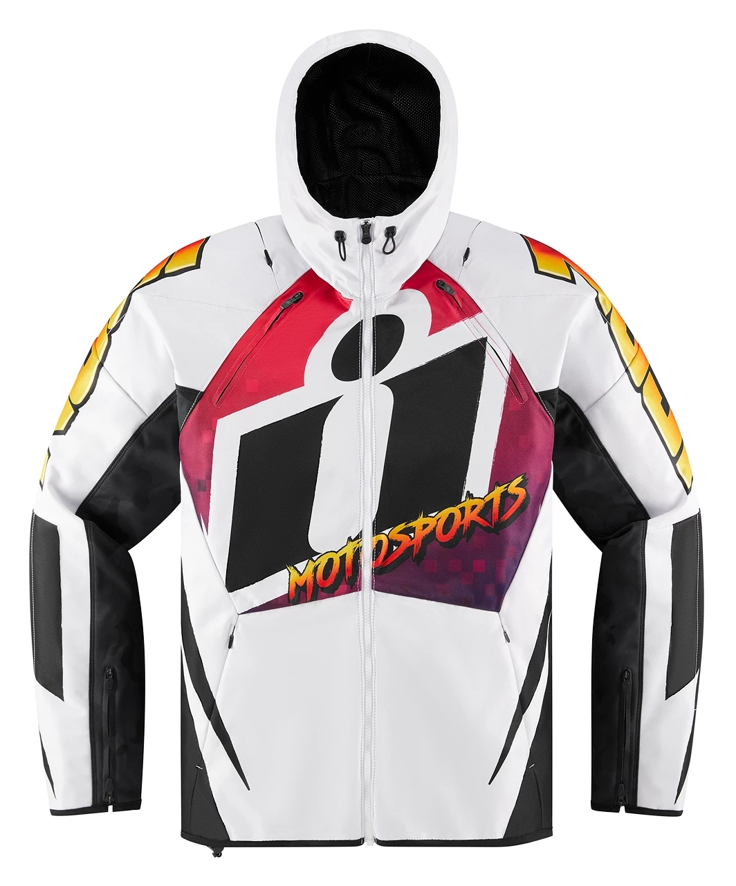 Black bolts and a massive 80s graphic punch bring the Airform Quarterflash Jacket straight from the arcade to the street. It has a relaxed fit chassis built from lightweight reinforced polyester, equipped with a full complement of D3O impact protectors at shoulders elbows and back. Four intake/exhaust vents and a AirFly mesh center vent create the ultimate in airflow. Additionally, the Airform Quarterflash Jacket comes with our waterproof level WP1 rating, sufficient for light showers.Â