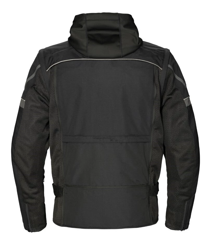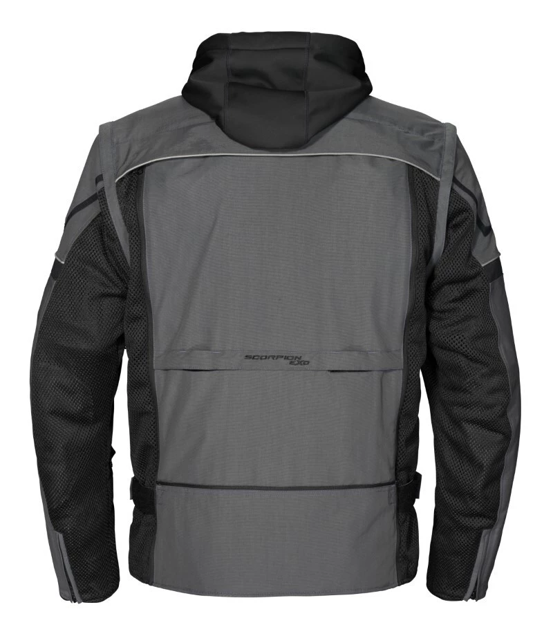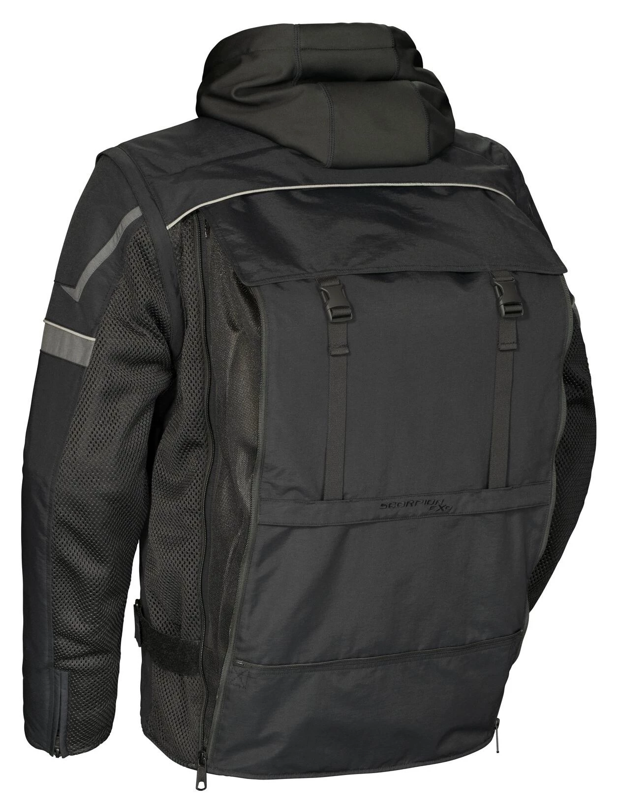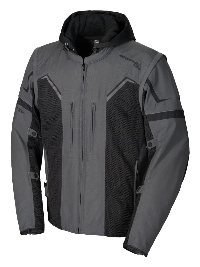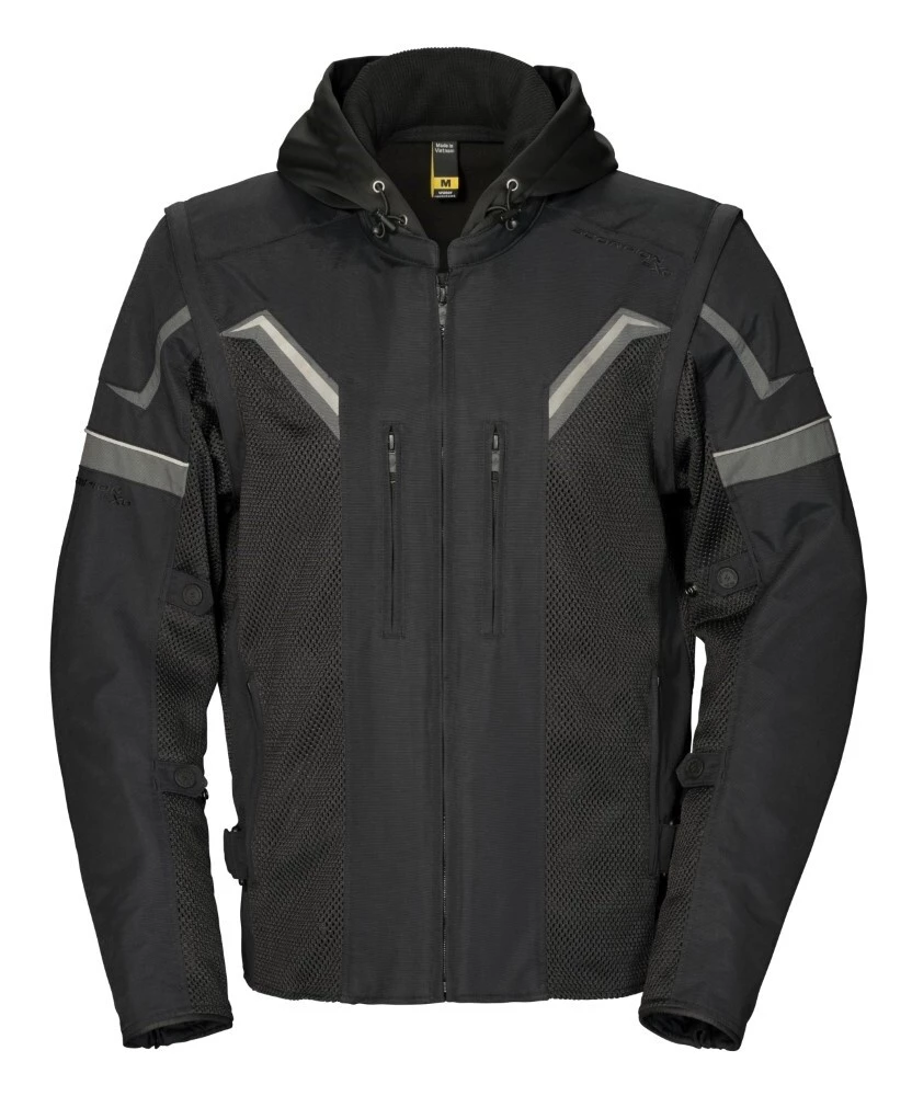 The Scorpion Transformer Jacket is the only jacket comfortable for every season. When temperatures start to drop bundle up with the polyester windproof softshell hoodie that zips directly into a 600D premium nylon shell. During warmer months transform this jacket into a stylish vest by zipping off the sleeves. A tuck away panel on the back provides a safe, waterproof storage place to keep all the components of this jacket together. Adjustability at the forearms, biceps and waist ensure that this jacket fits any rider with or without layers. CE certified SAS-TEC armor at the shoulders and elbows for safety and NightViz reflective piping on shoulders and back for added visibility.