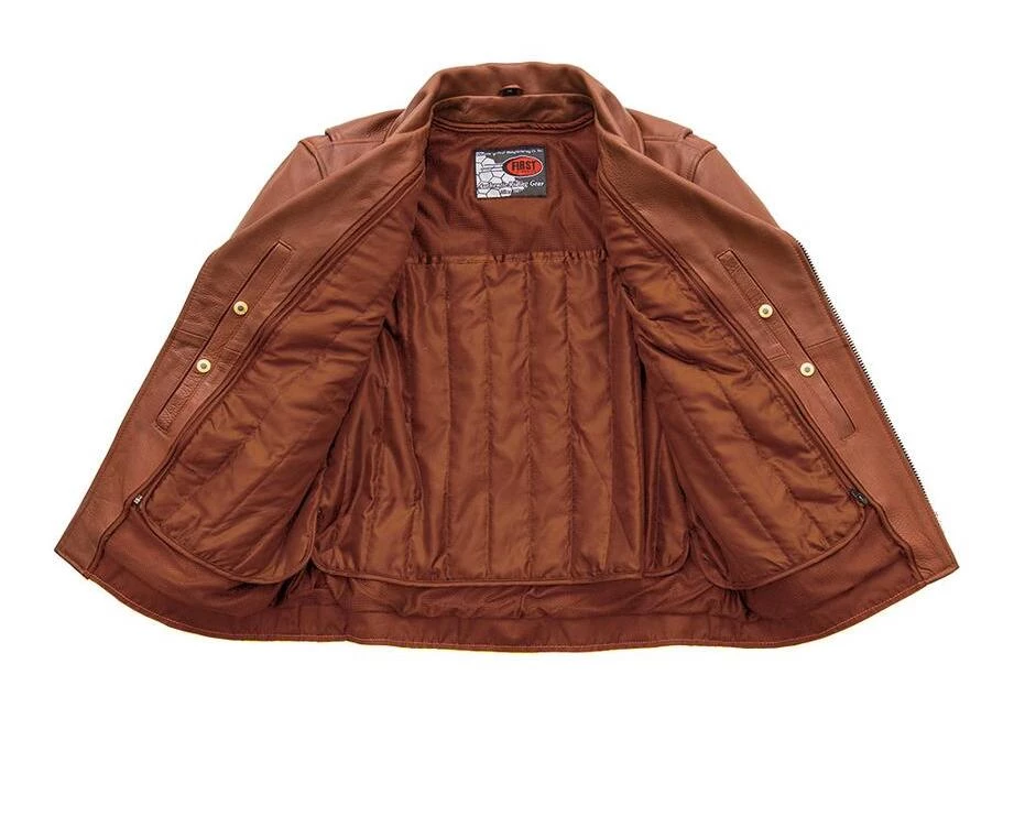 The Fillmore Jacket from First Manufacturing is constructed from drum-dyed naked cowhide and features plenty of places to stash your necessities. The Fillmore includes pockets for optional shoulder, elbow and back armor while the insulated zip-out lining provides multi season versatility. Finally, the jacket’s action back provides a bit of additional mobility on and off the bike.