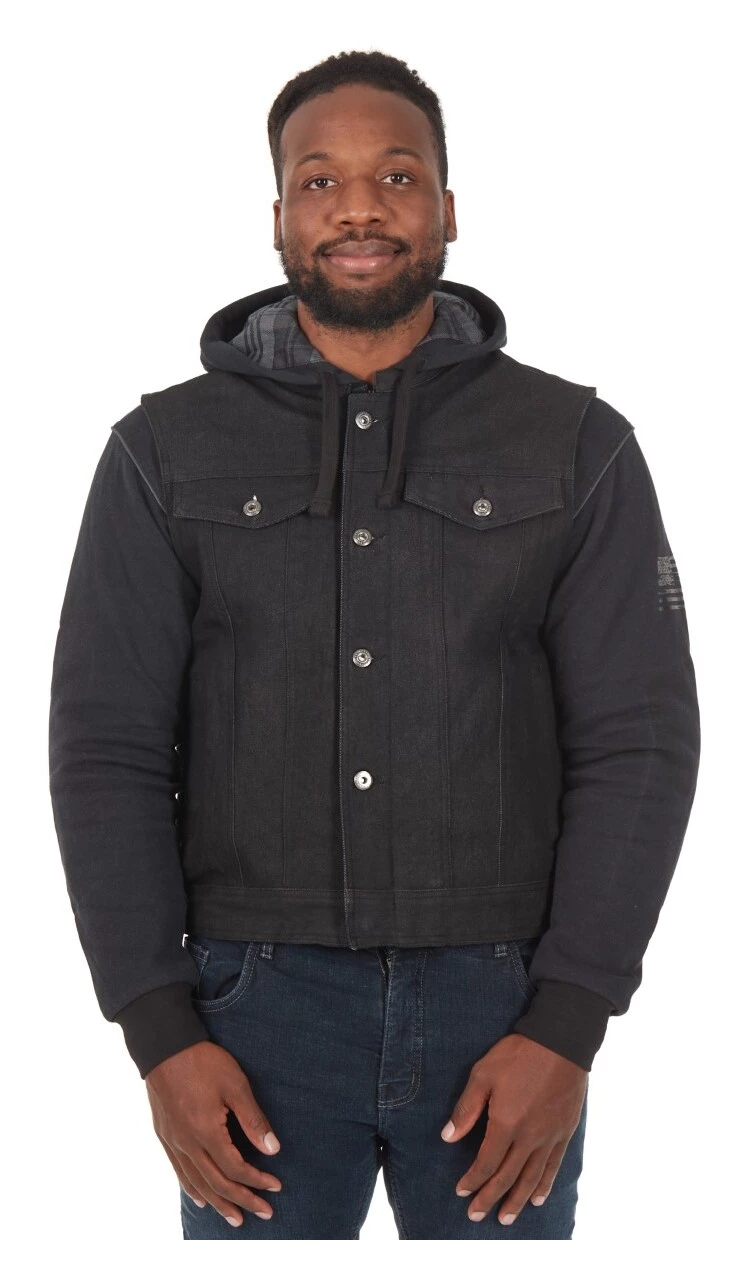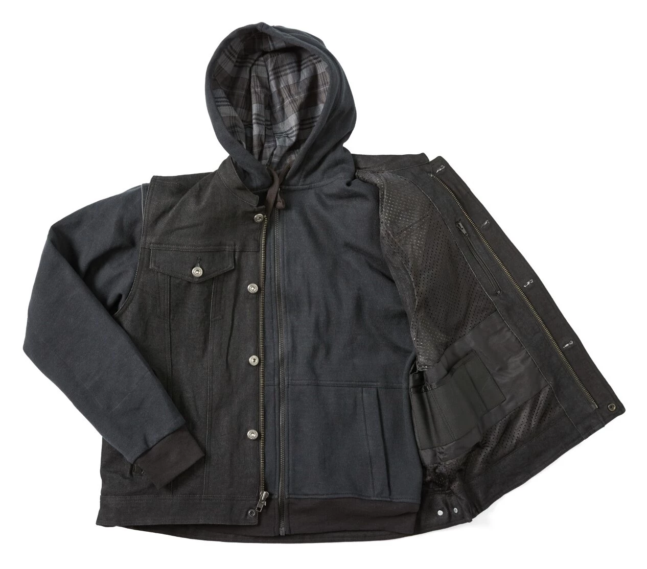 The Street & Steel Lane Splitter 2 Jacket combines a lightweight vest with a Kickstarter Moto Armored Hoody underneath. The outside vest has everything avid riders need. Two chest pockets and two lower hand pockets to store any mobile devices or eyewear. A single panel back with zipper access is ideal for patches. The Kickstarter hoody underneath is constructed from full coverage Poly-aramid knit with a mesh airflow liner. Low profile CE Level 2 shoulder and elbow armor offer a great level of protection farther then the traditional vest can go. There is also a pocket for an optional back protector.