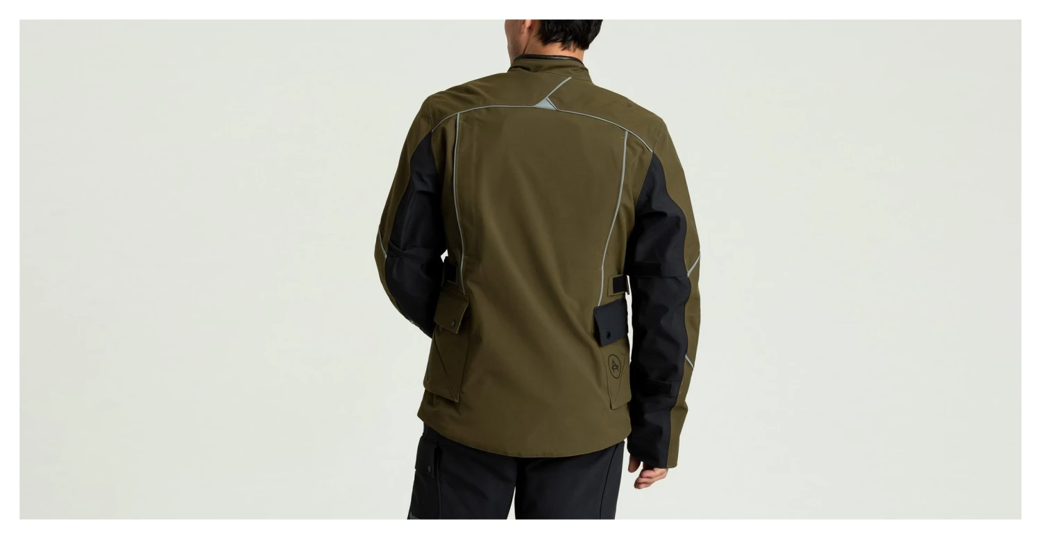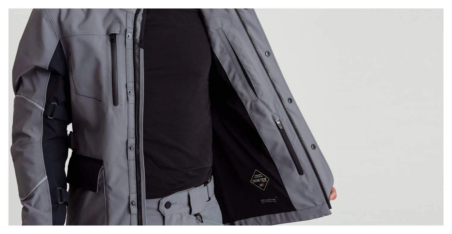 The Divide Motorcycle Jacket is designed for life’s best long-distance adventures when you’re heading off the grid, and you and your bike are going to be on the road for days, weeks, or even months. Made using GORE-TEX Pro fabric and fully seam sealed, the Divide Jacket is both abrasion resistant and waterproof. It’s also surprisingly breathable, thanks to pit zips and zippered back vents that allow air to enter and exit through the jacket, an important feature for rides in which the climate may change a few times. For maximum protection at high-impact areas, the jacket features a double layer of fabric at the shoulders and outer sleeves.