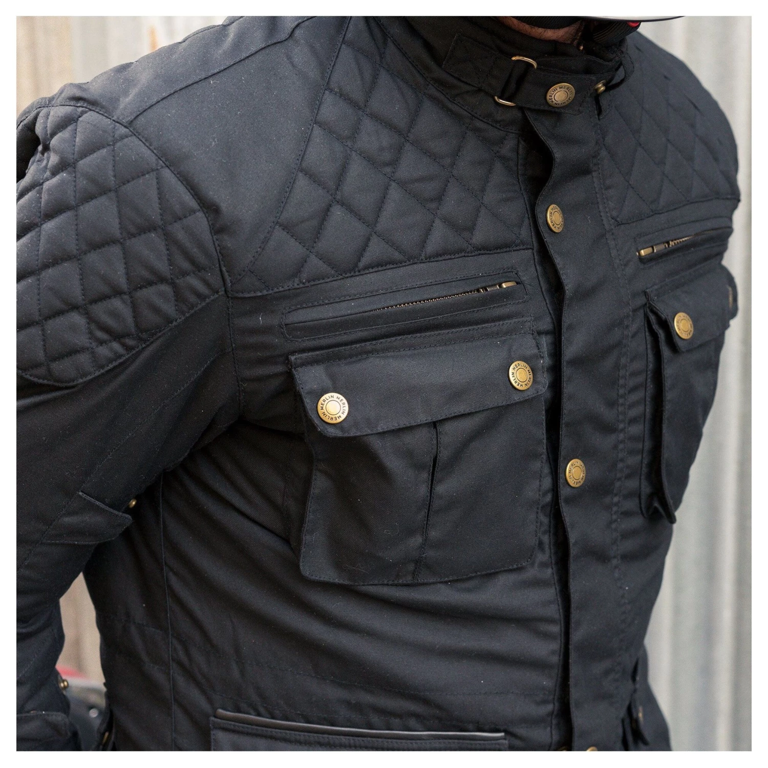 The Merlin Edale Jacket offers classic styling with modern motorcycle comfort and protection elements. The jacket is constructed from 8oz cotec fabric and features a breathable, waterproof membrane and a removable Outlast thermal lining making it perfect for those days when the weather just won’t make up its mind. D3O elbow and shoulder armor is included and you can add an optional back protector (sold separately) to the back protector pocket. The interior of the jacket is done in a tartan cotton for comfort and subdued styling.