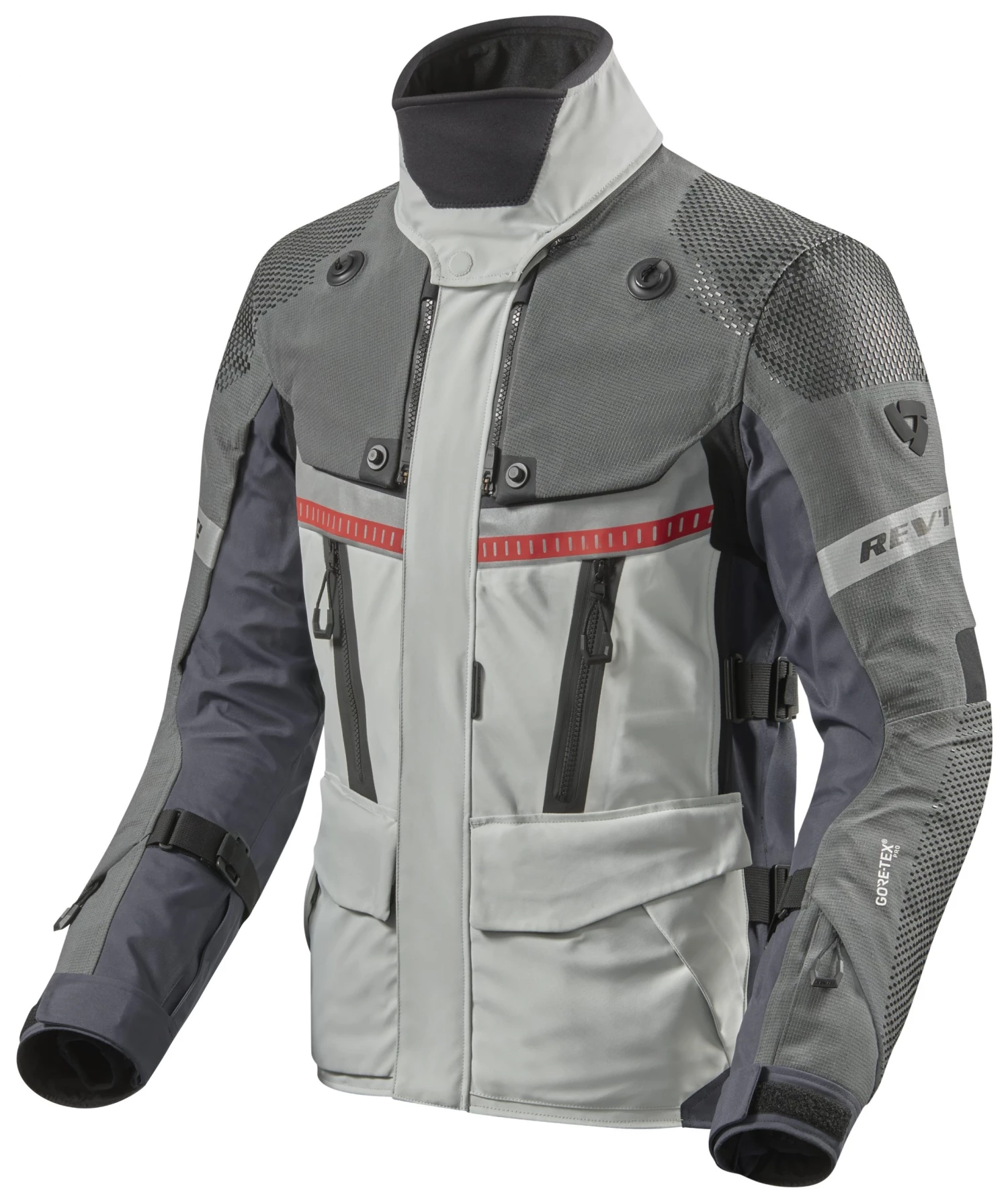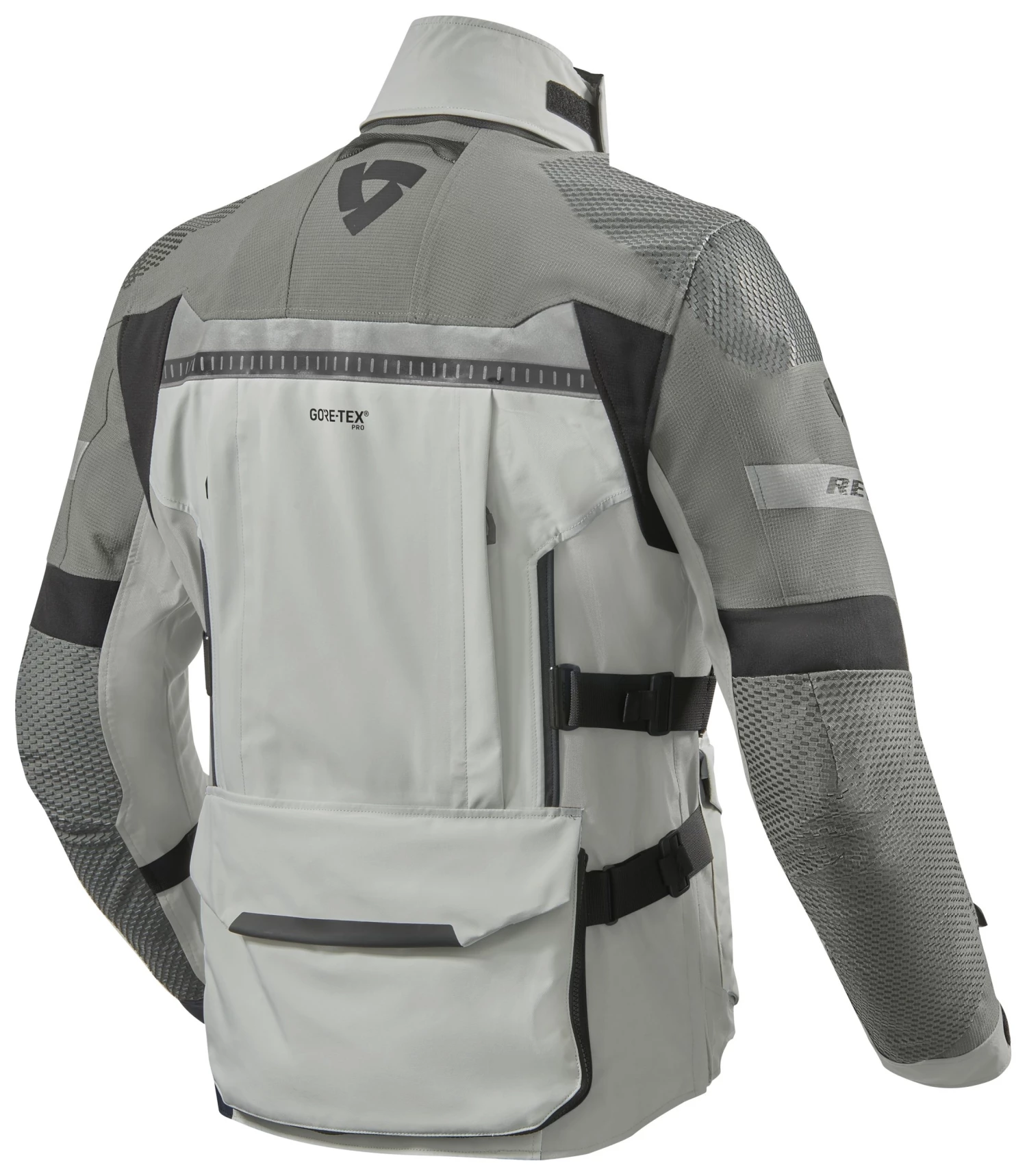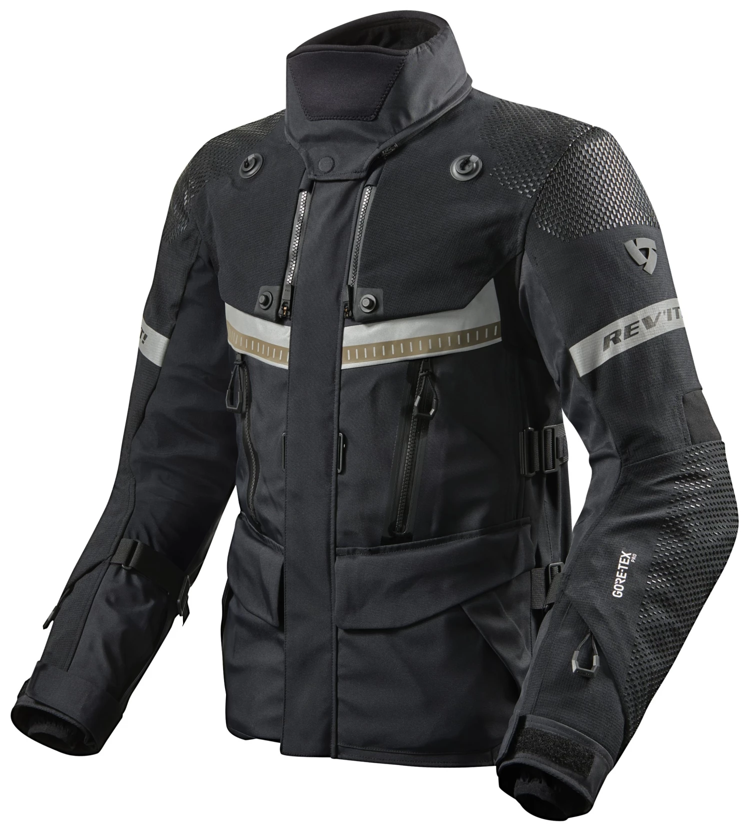 Dominate any terrain no matter the weather with the Dominator 3Â GTX Jacket from REV’IT!. Using feedback from off-road veterans and RTW travelers, REV’IT! has improved upon the original Dominator with an updated / cleaner design, ventilation improvements and refinements to all facets of the jacket’s construction. Waterproofing is achieved via top of the line 3 layer GORE-TEX PRO breathable laminate with additional airflow available from VCS Aquadefence panels in the upper chest and VCS zipper vents in the upper / lower arm and upper back areas. Extra durability and abrasion resistance is built-in to the shoulders using GORE-TEX PRO 3 layer reinforced Armacor fabric, while award-winning SEEFLEX CE level 2 armor in the shoulders, elbows and back ensure you stay protected. A stow-able storm collar now comes standard to help protect the rider against the elements and a detachable kidney belt rounds things out, helping provide stability and support to whole garment. Whether its a day trip or a multi-year excursion, the Dominator 3 has you covered.
