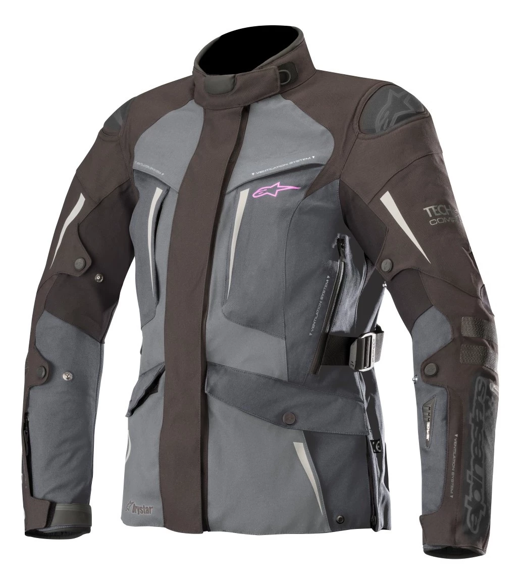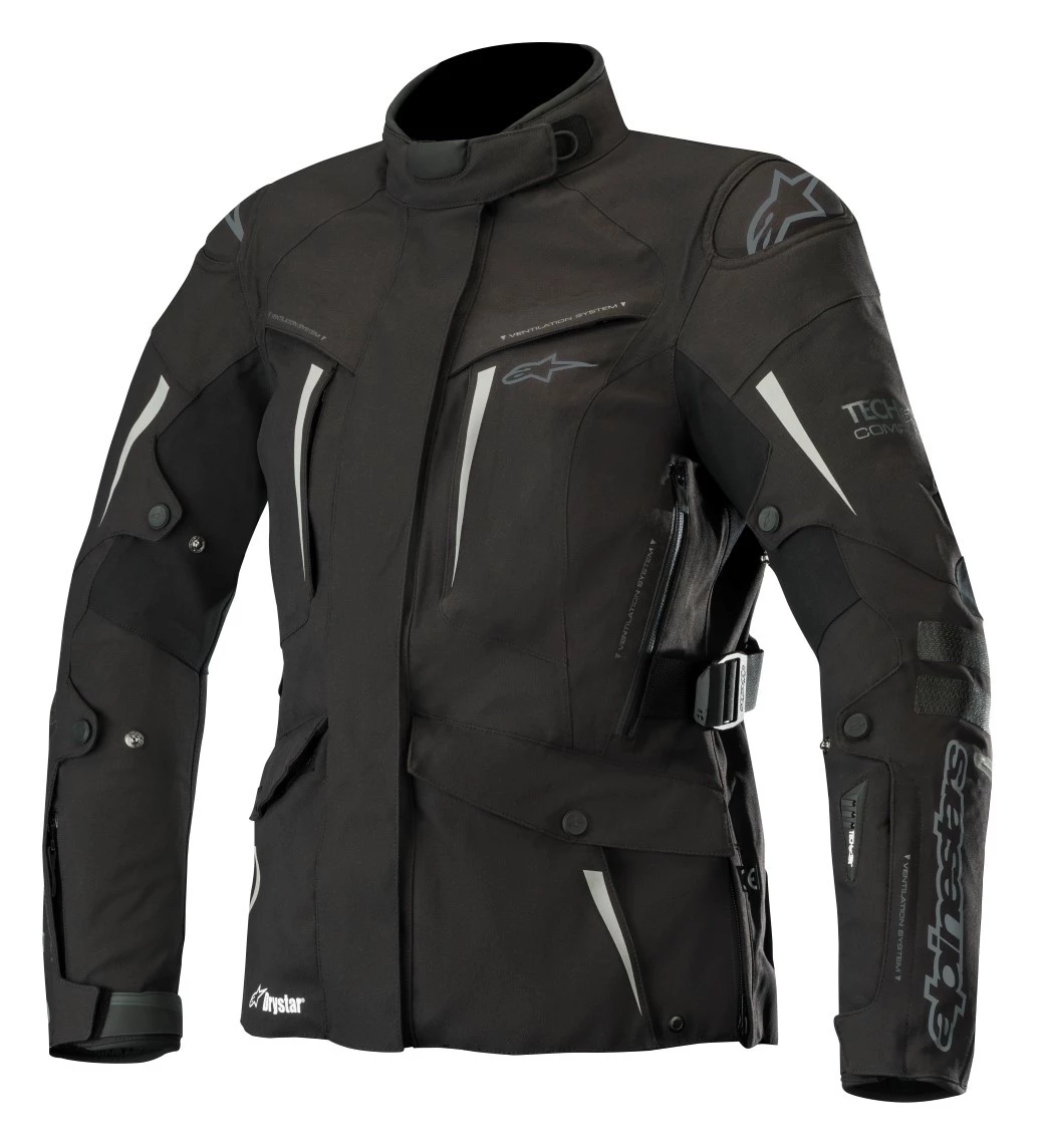 The Alpinestars Stella Yaguara Drystar Jacket uses robust textile with a laminated Drystar waterproof membrane for a shell that resists both abrasion and water entry. Its touring collar is designed to keep the cold wind from battering your neck while still providing all day riding comfort. Zippered vents at the arms, back and sides of the torso help moderate body temperature as the ambient temperature changes. CE level 2 armor at the elbows and shoulders soak up any impact energy. Consider adding chest and back armor into the corresponding pockets to complete the impact protection or opt for airbag protection by adding in the Tech-Air Street Vest (sold separately)