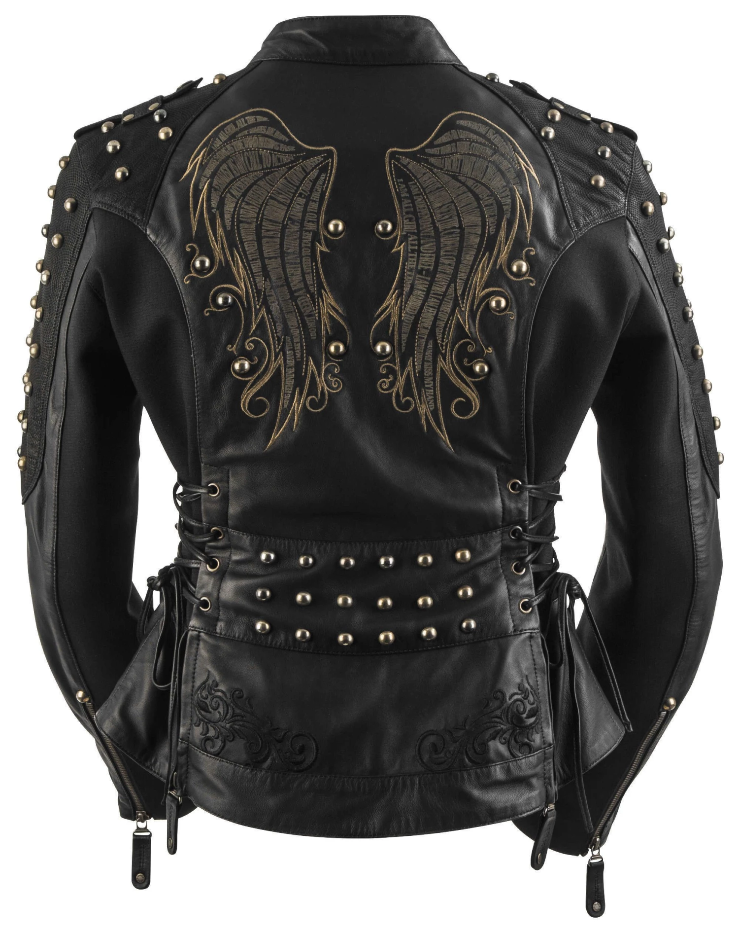 Let the world know you are empowered and ready to be where you want to be with the Black Brand Mantra jacket. A well-written, empowering mantra that fills the angel wings on this top-grain sheep leather two-way stretch nylon chassis. Inside you find the Mantra spelled out in the liner just to make sure people know what you’re saying.