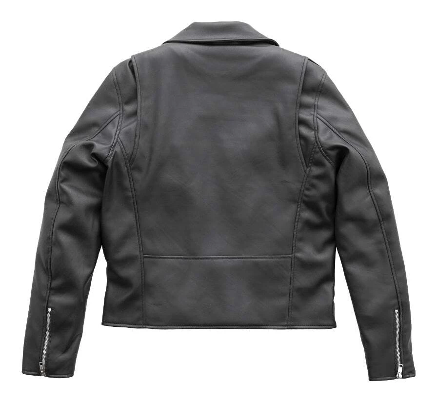 The Cassandra Women’s Jacket is made from diamond cut genuine vegan leather and high voltage rock ‘n’ roll spirit!