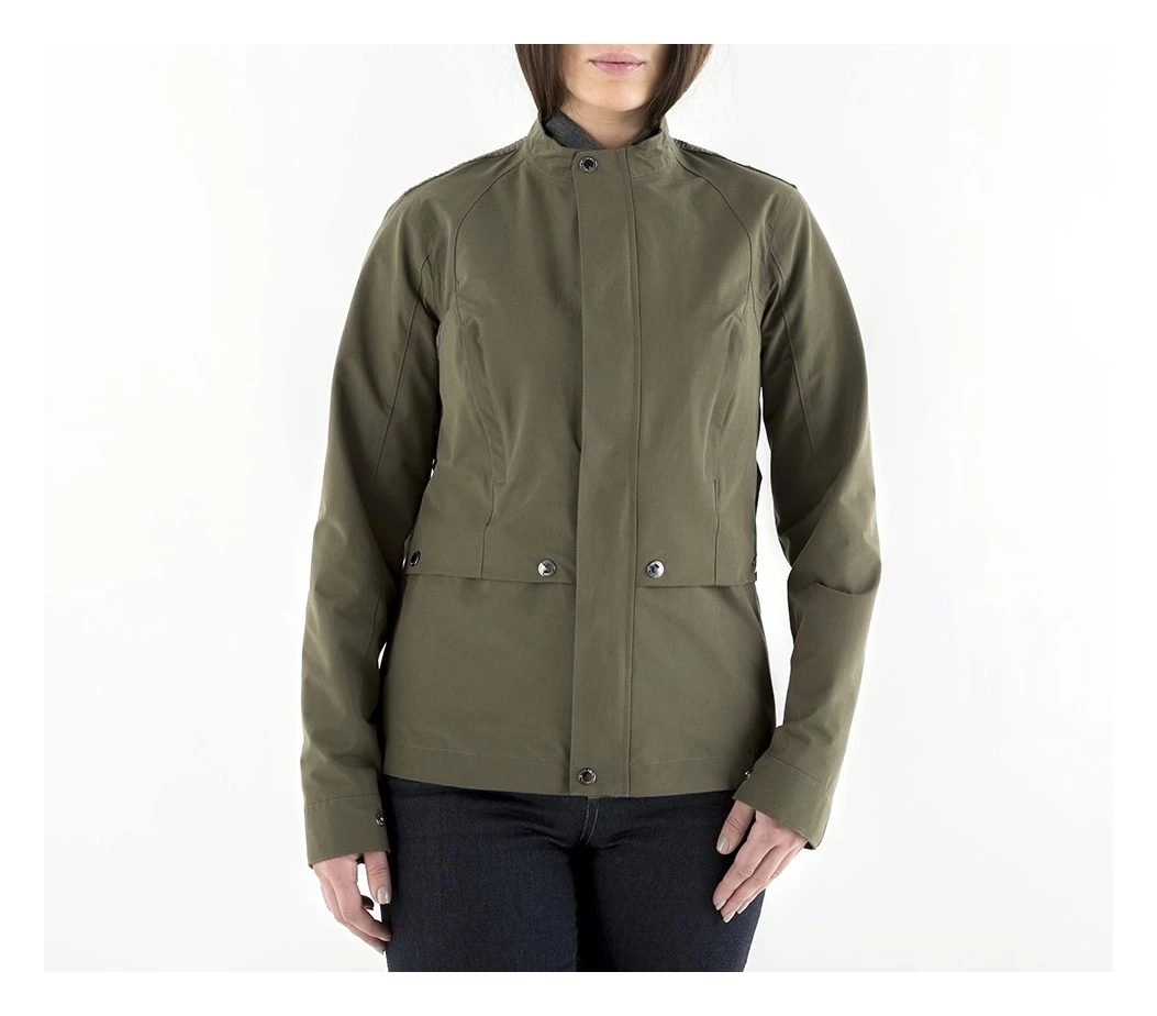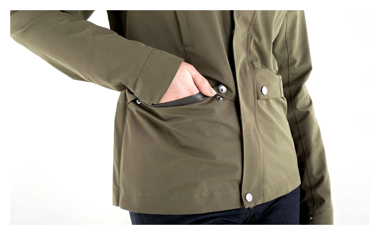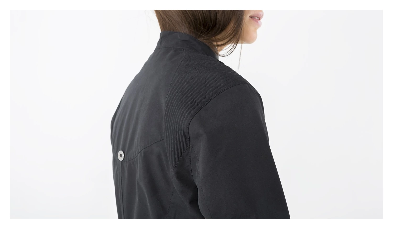 The Levett Jacket is a shorter waterproof jacket with a feminine cut and functional detail. Equipped with four external pockets and one interior pocket for excellent storage. The Levett also features stretch accordion panels over the back shoulders, a flattering back waist belt and a hidden gusset on the hem which opens up for a little extra room when sitting down.