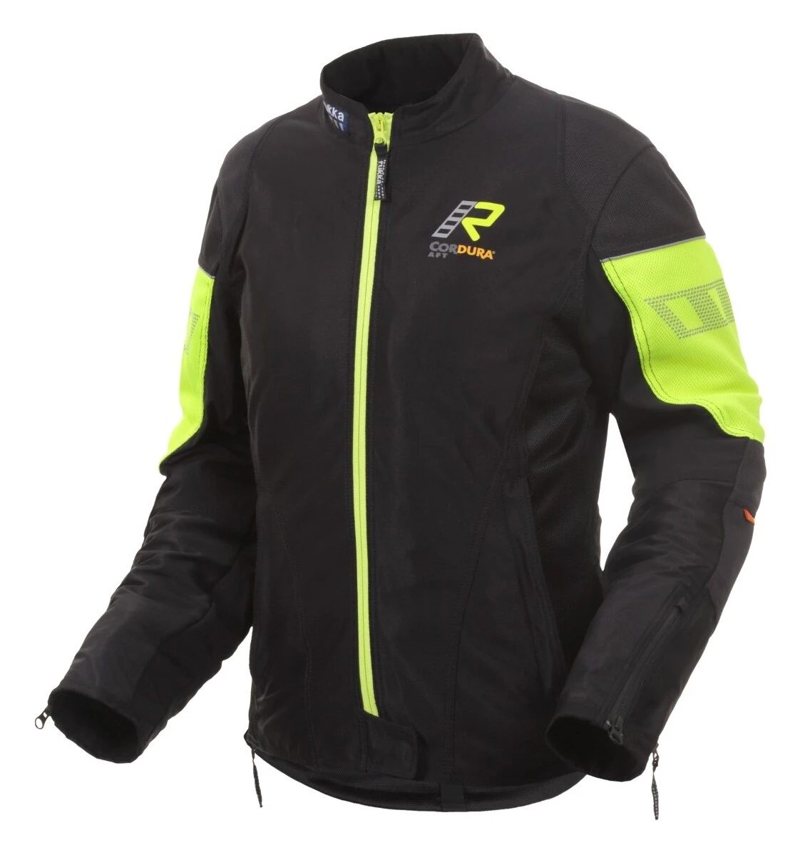 The Rukka Stretchair Women’s Jacket is purpose built for hot weather riding thanks to Cordura AFT mesh that vents freely, but still protects against abrasion. Strategically placed stretch Cordura panels help with fit and freedom of movement. CE rated armor cover the shoulder and elbows with the option of adding a back protector insert (sold separately). A single internal waterproof pocket keeps your cell phone and documents dry in the event of an unforeseen sun shower. Hot weather riding is a literal breeze.